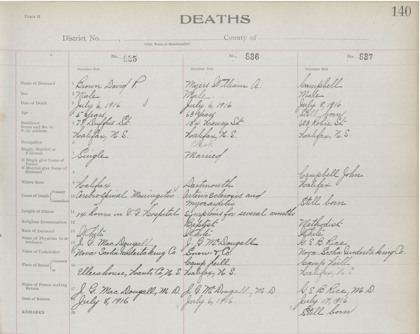 Death Registration: Year: 1916 book: 21 page: 140 number: 837