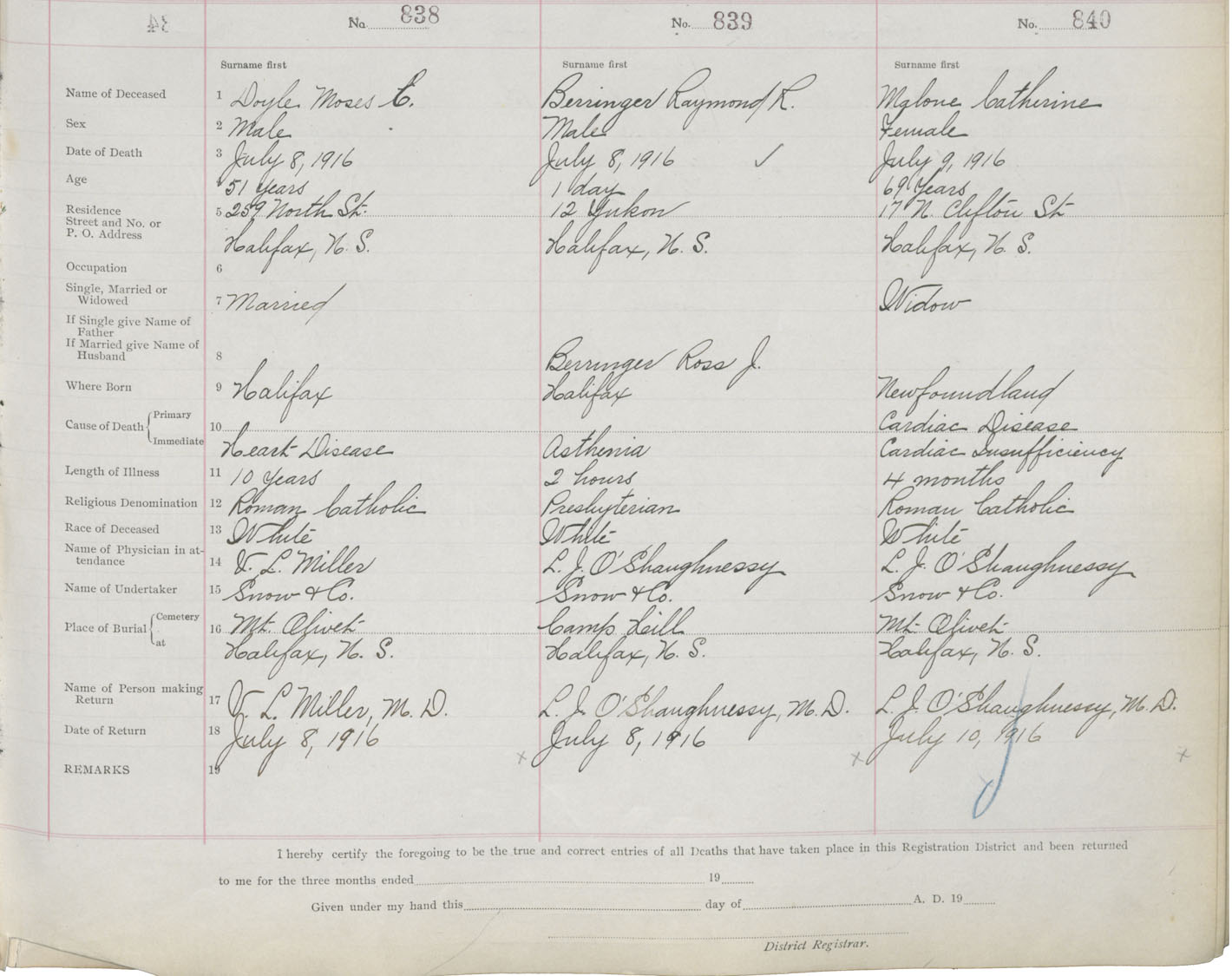 Death Registration: Year: 1916 book: 21 page: 140 number: 840