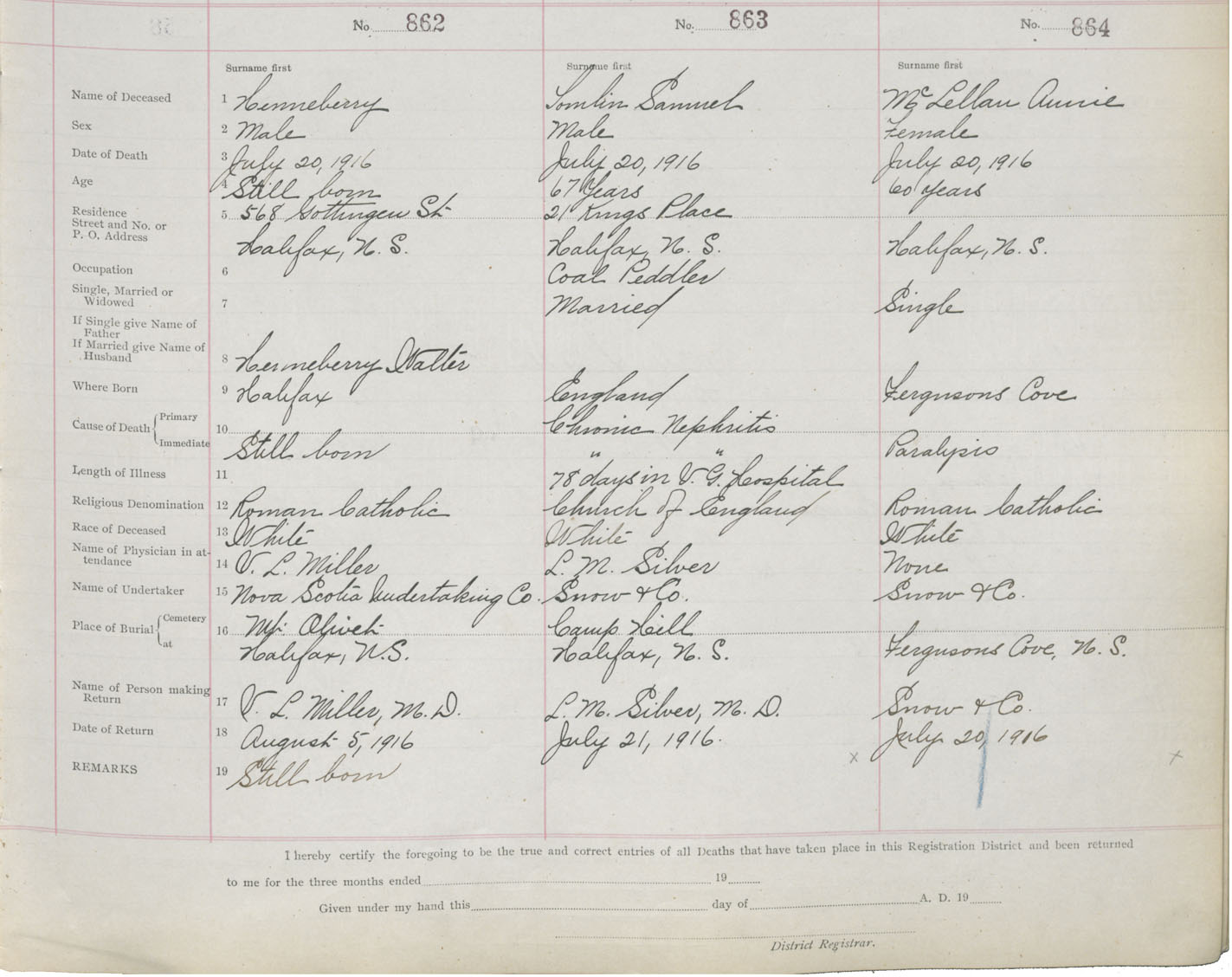 Death Registration: Year: 1916 book: 21 page: 144 number: 864
