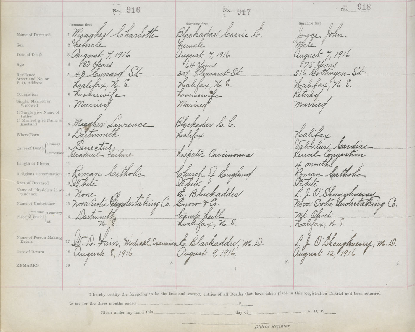Death Registration: Year: 1916 book: 21 page: 153 number: 918