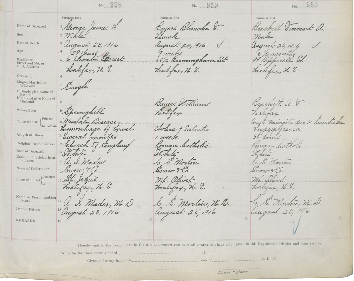 Death Registration: Year: 1916 book: 21 page: 160 number: 960