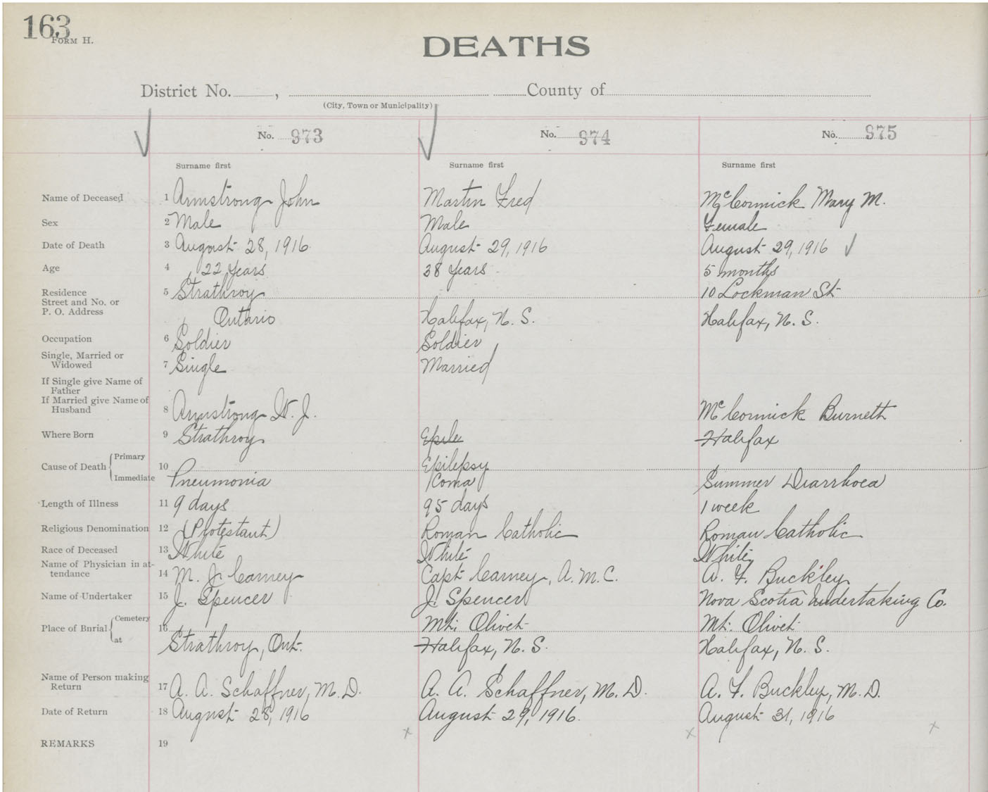 Death Registration: Year: 1916 book: 21 page: 163 number: 975