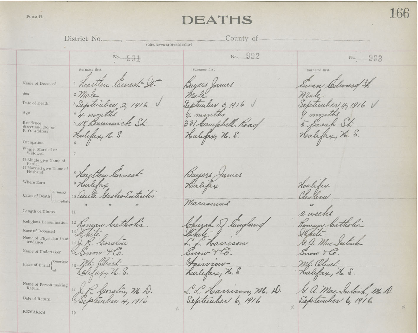 Death Registration: Year: 1916 book: 21 page: 166 number: 993