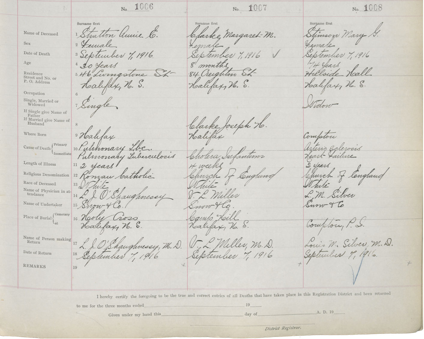 Death Registration: Year: 1916 book: 21 page: 168 number: 1008