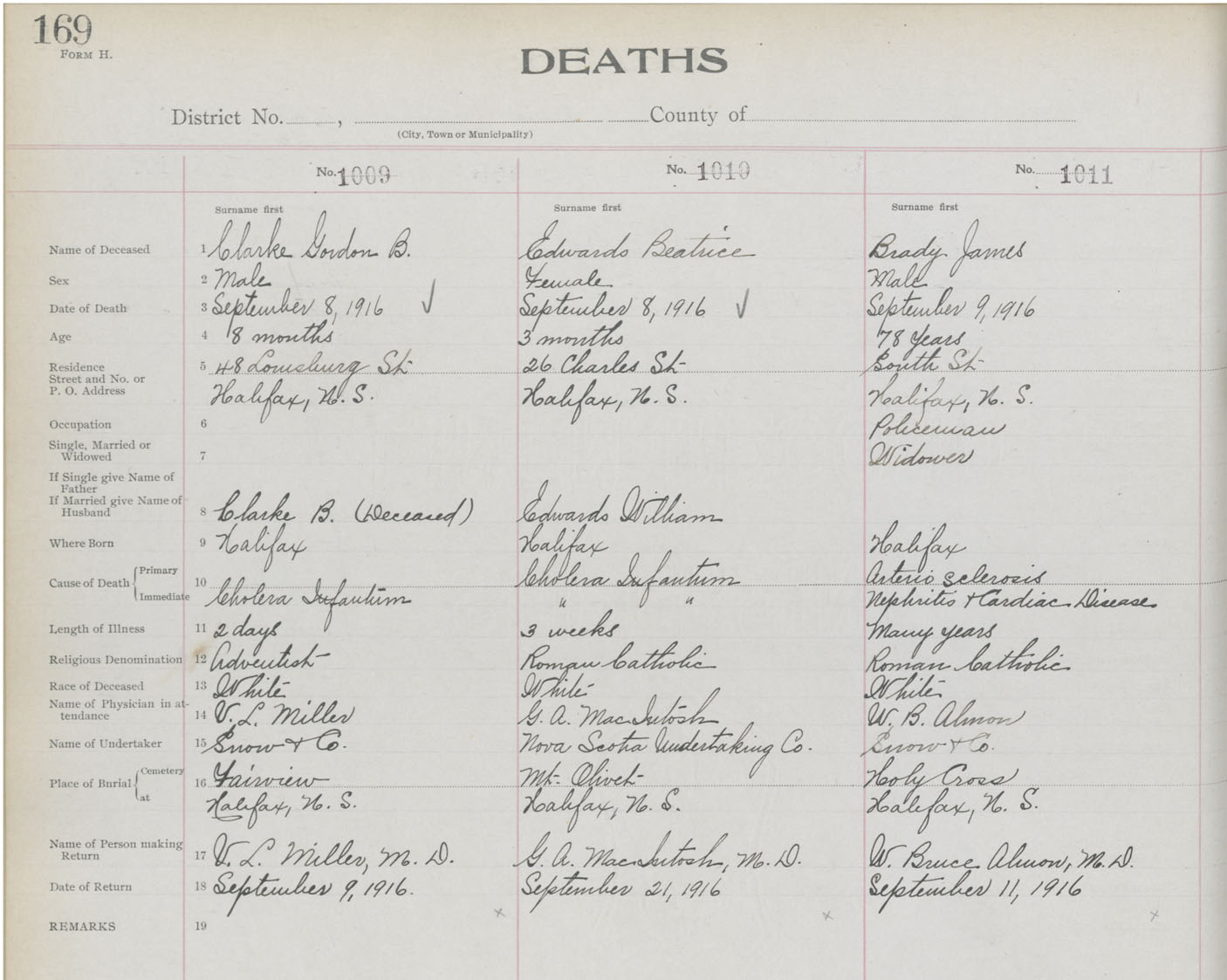 Death Registration: Year: 1916 book: 21 page: 169 number: 1011