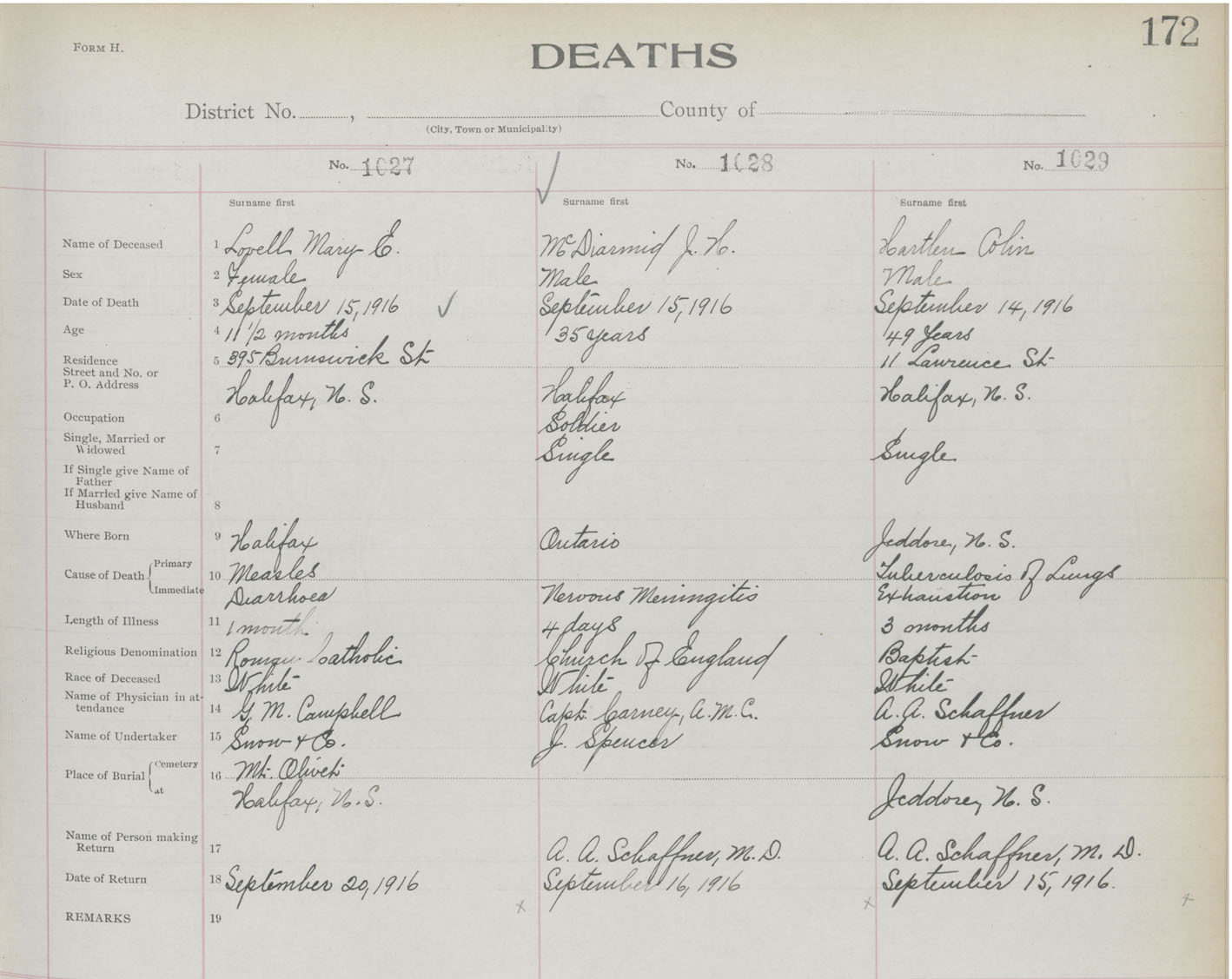 Death Registration: Year: 1916 book: 21 page: 172 number: 1029