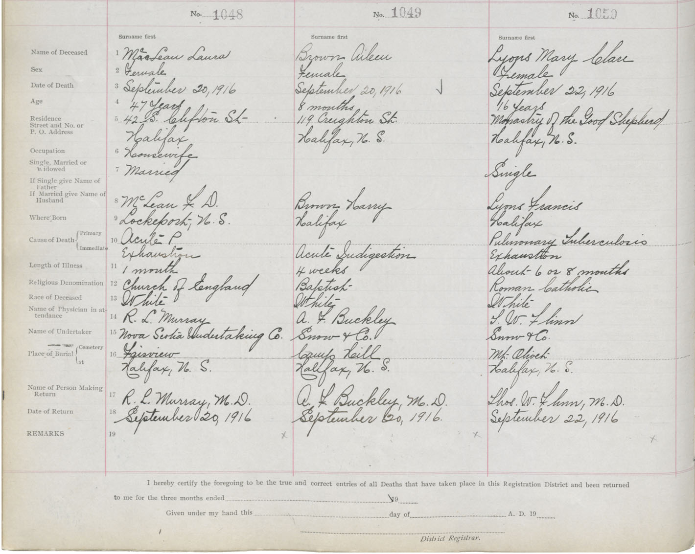 Death Registration: Year: 1916 book: 21 page: 175 number: 1050