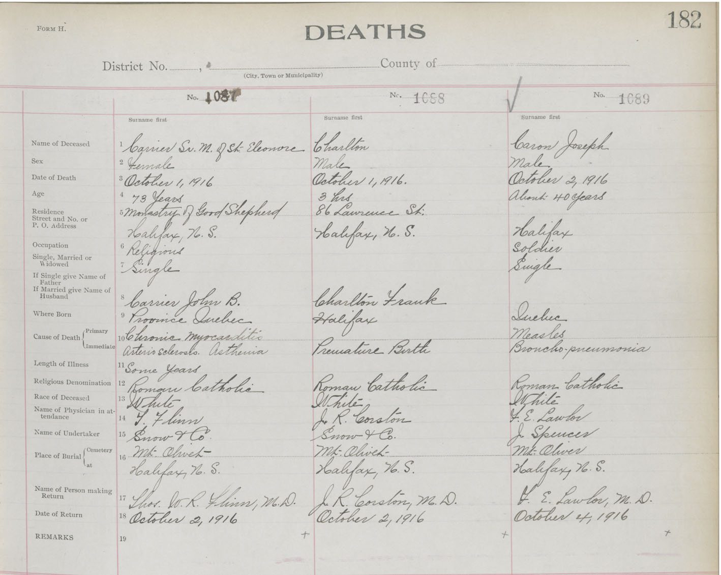 Male Death Registration: Year: 1916 book: 21 page: 182 number: 1089