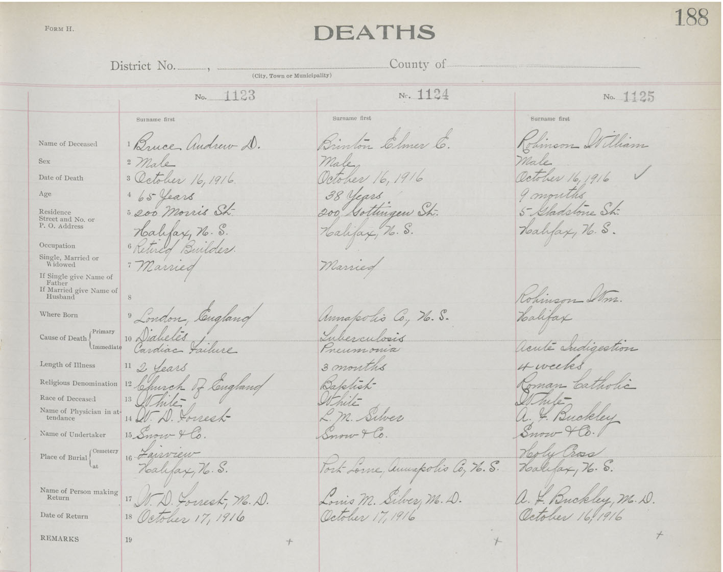 Death Registration: Year: 1916 book: 21 page: 188 number: 1125