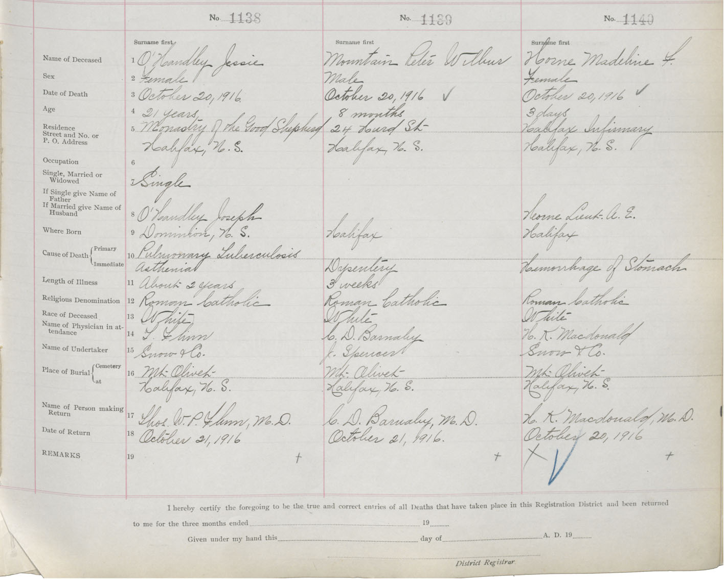 Death Registration: Year: 1916 book: 21 page: 190 number: 1138