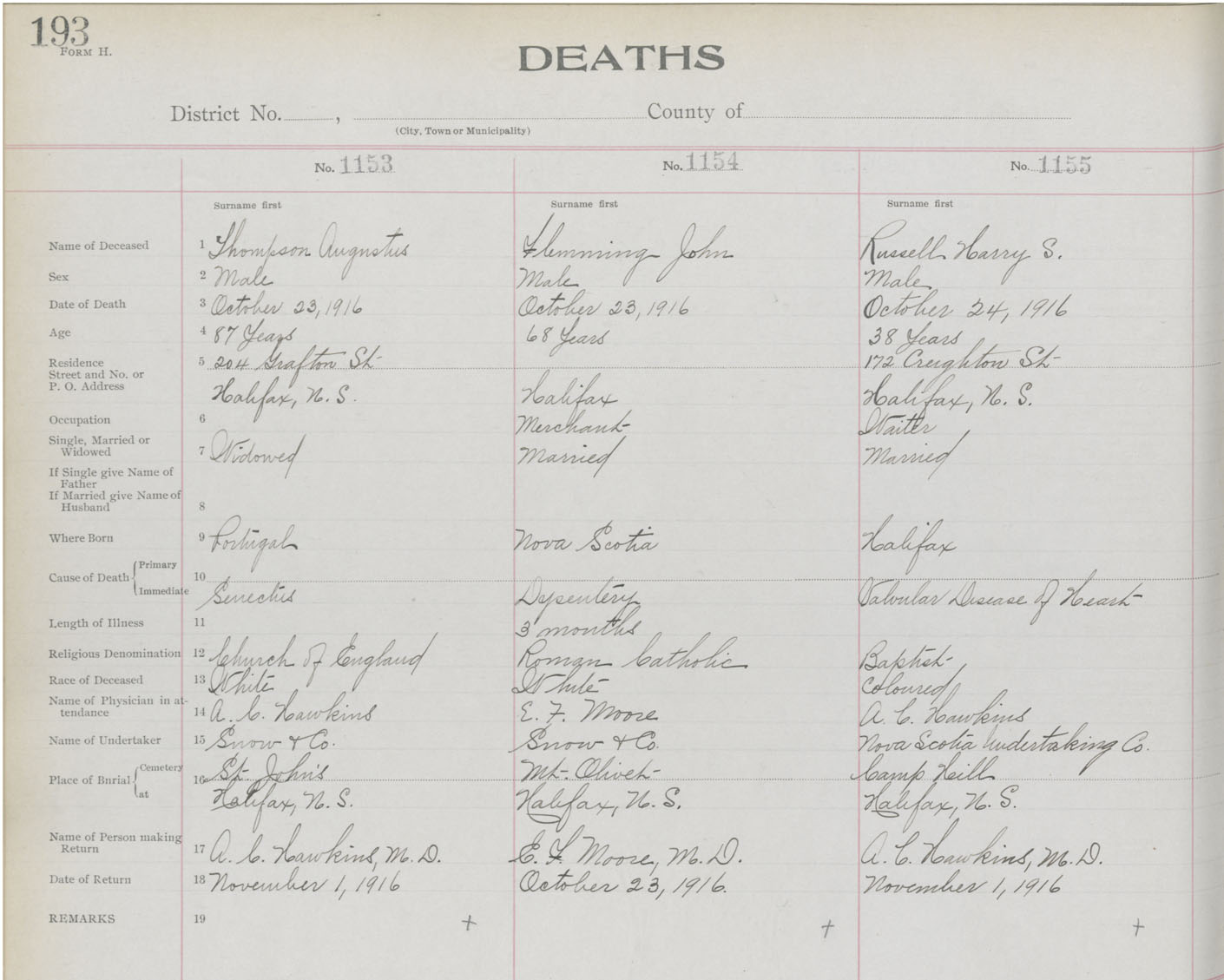 Death Registration: Year: 1916 book: 21 page: 193 number: 1153