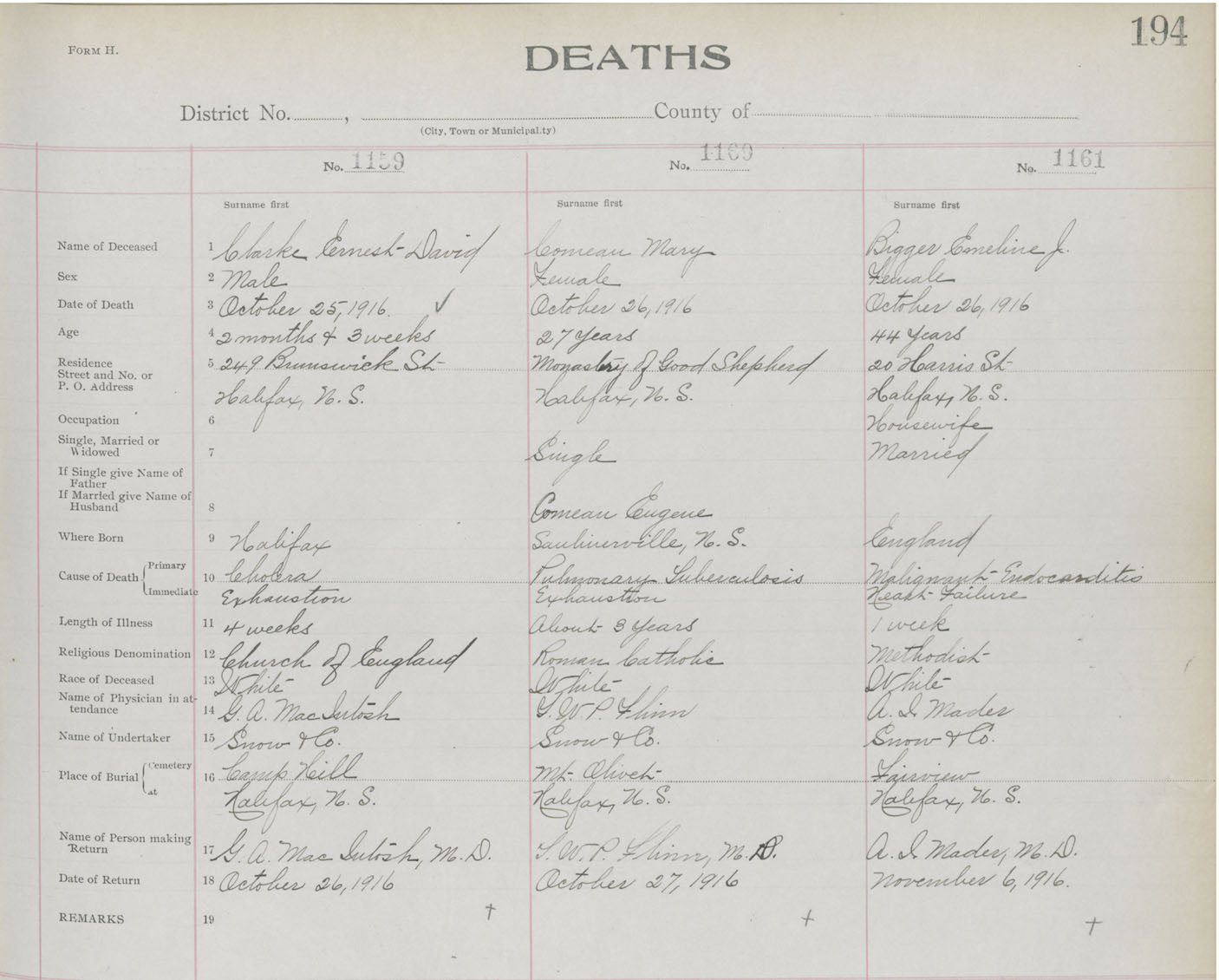 Death Registration: Year: 1916 book: 21 page: 194 number: 1159
