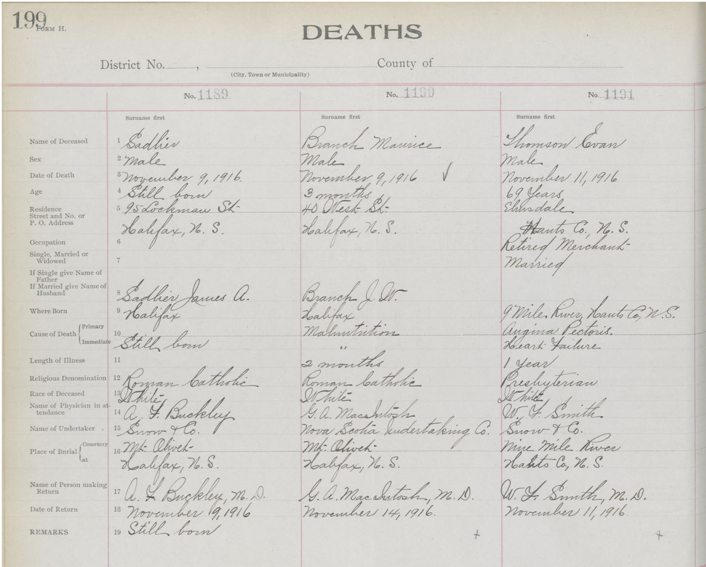 Death Registration: Year: 1916 book: 21 page: 199 number: 1189