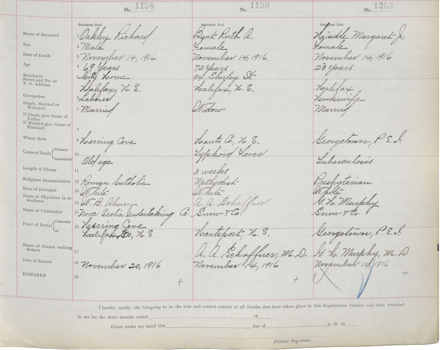 Death Registration: Year: 1916 book: 21 page: 200 number: 1198