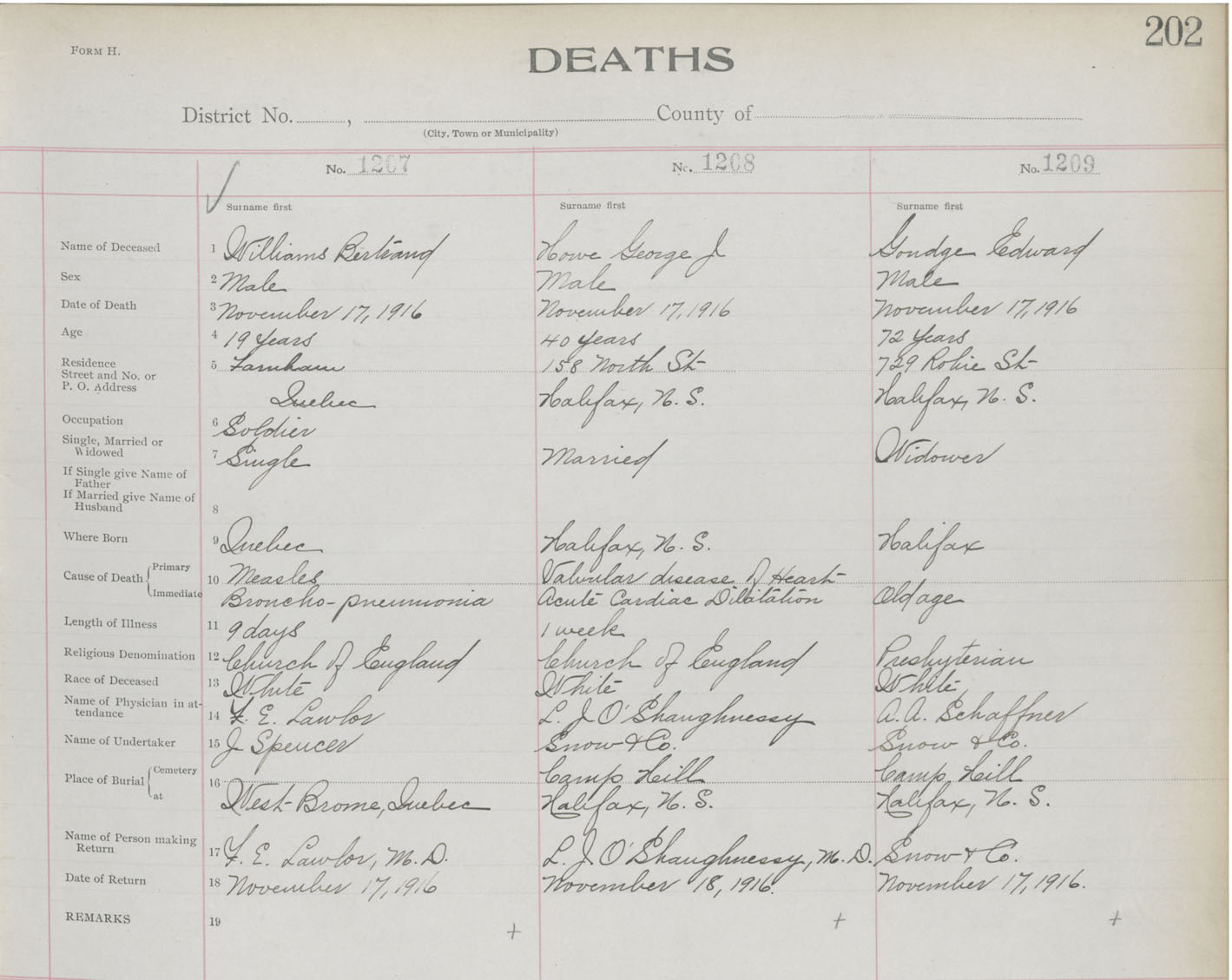 Death Registration: Year: 1916 book: 21 page: 202 number: 1207