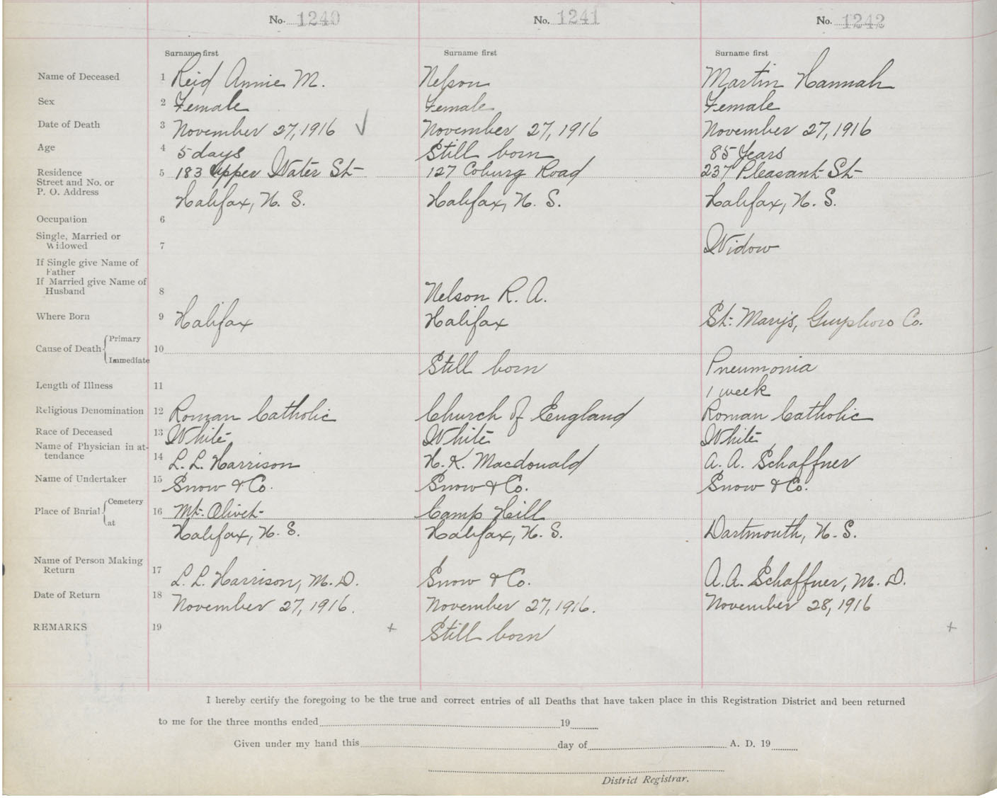 Death Registration: Year: 1916 book: 21 page: 207 number: 1240