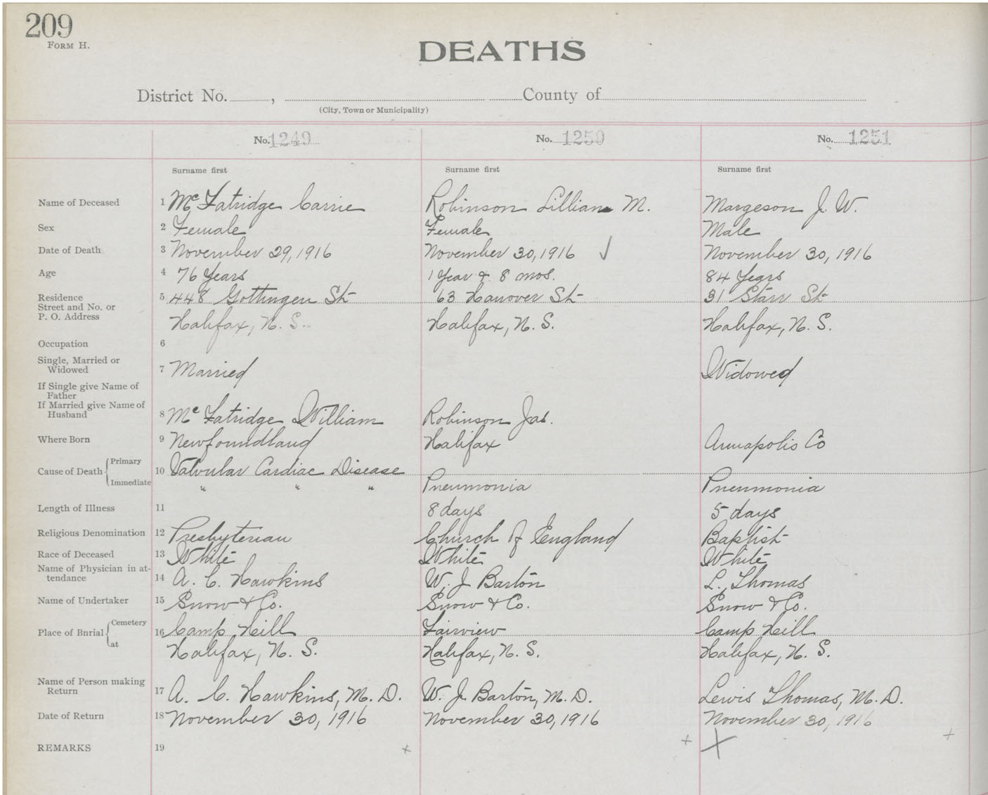 Death Registration: Year: 1916 book: 21 page: 209 number: 1249