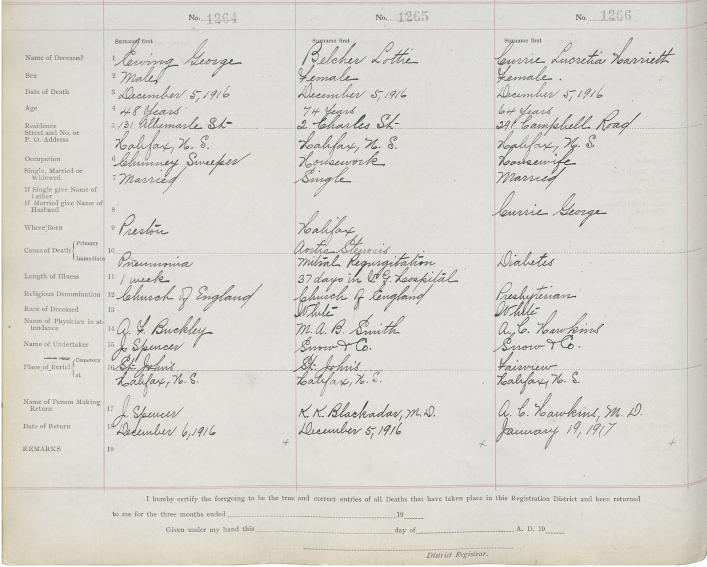 Death Registration: Year: 1916 book: 21 page: 211 number: 1264