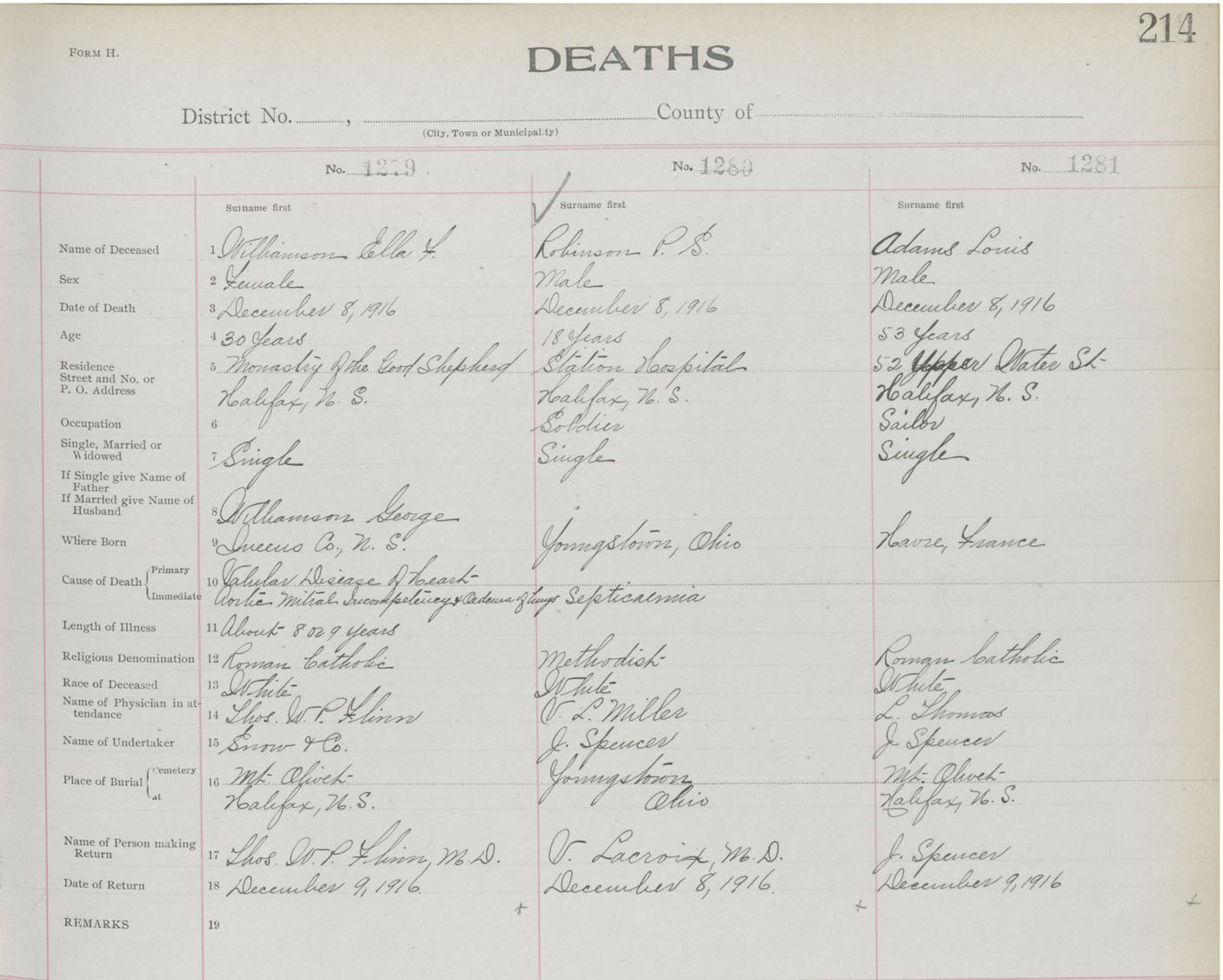 Death Registration: Year: 1916 book: 21 page: 214 number: 1279