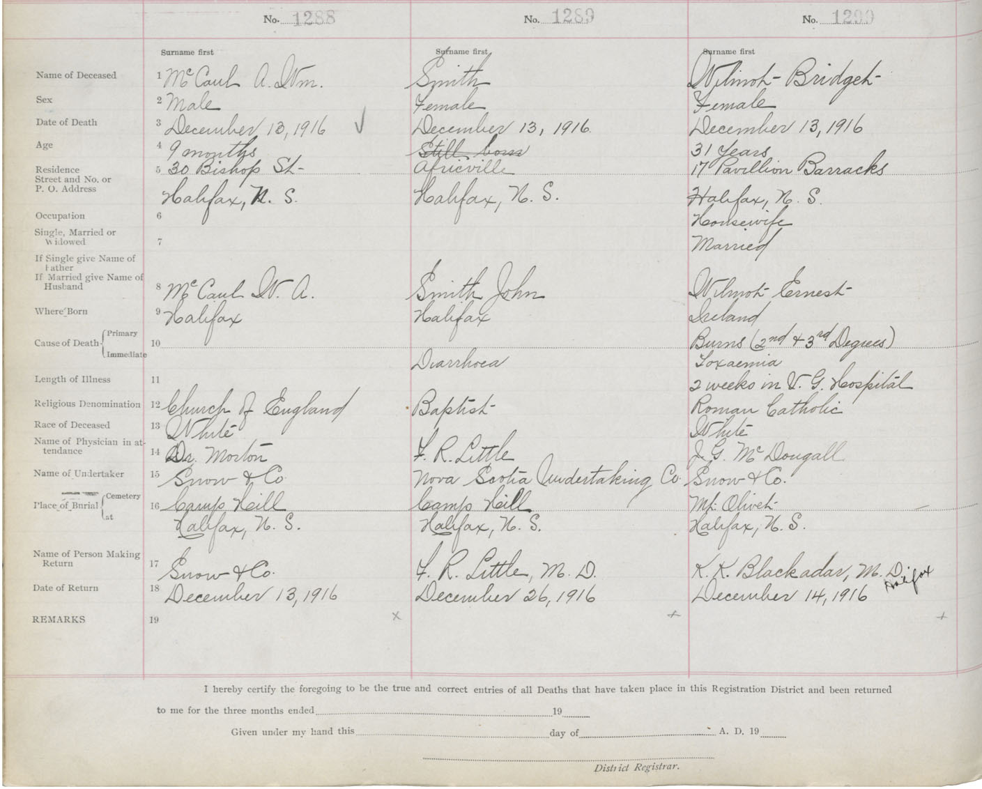 Death Registration: Year: 1916 book: 21 page: 215 number: 1288