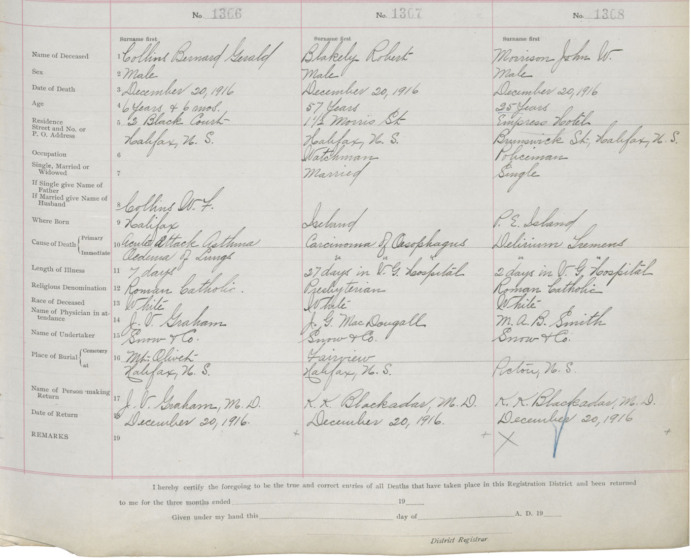 Death Registration: Year: 1916 book: 21 page: 218 number: 1306