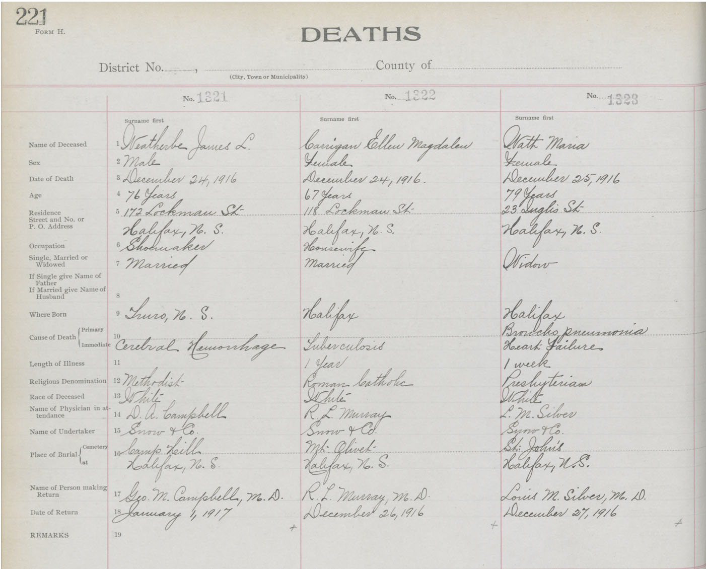 Death Registration: Year: 1916 book: 21 page: 221 number: 1321