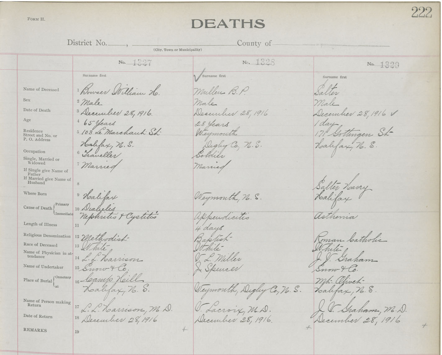 Death Registration: Year: 1916 book: 21 page: 222 number: 1327