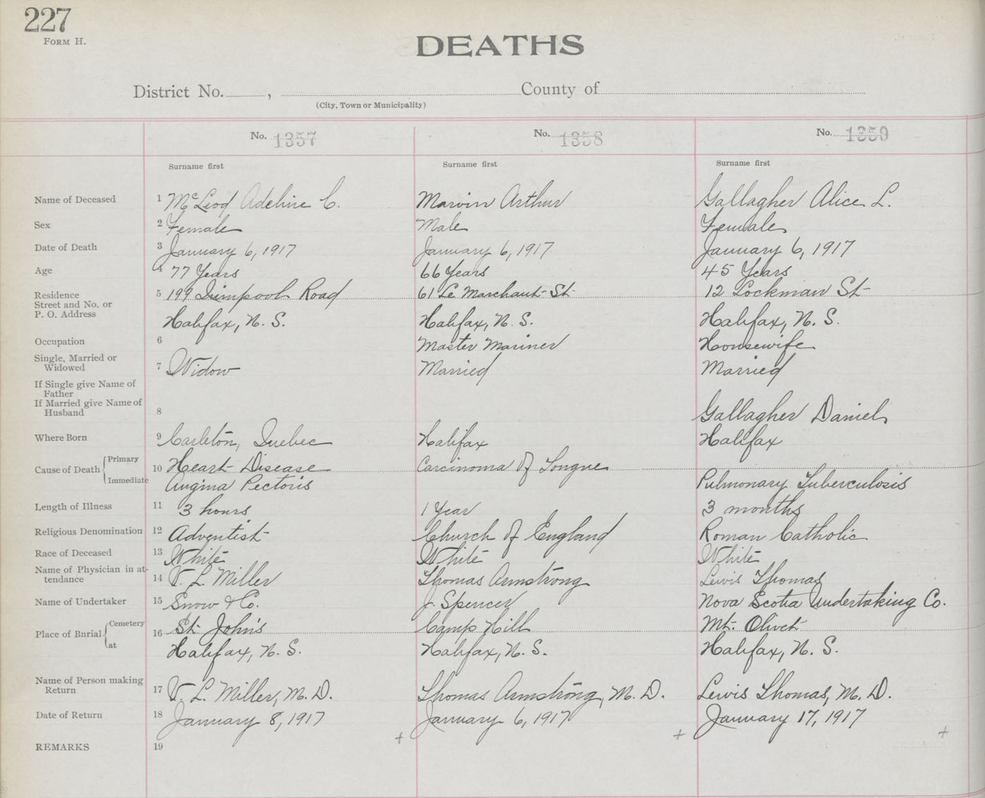 Death Registration: Year: 1917 book: 21 page: 227 number: 1357