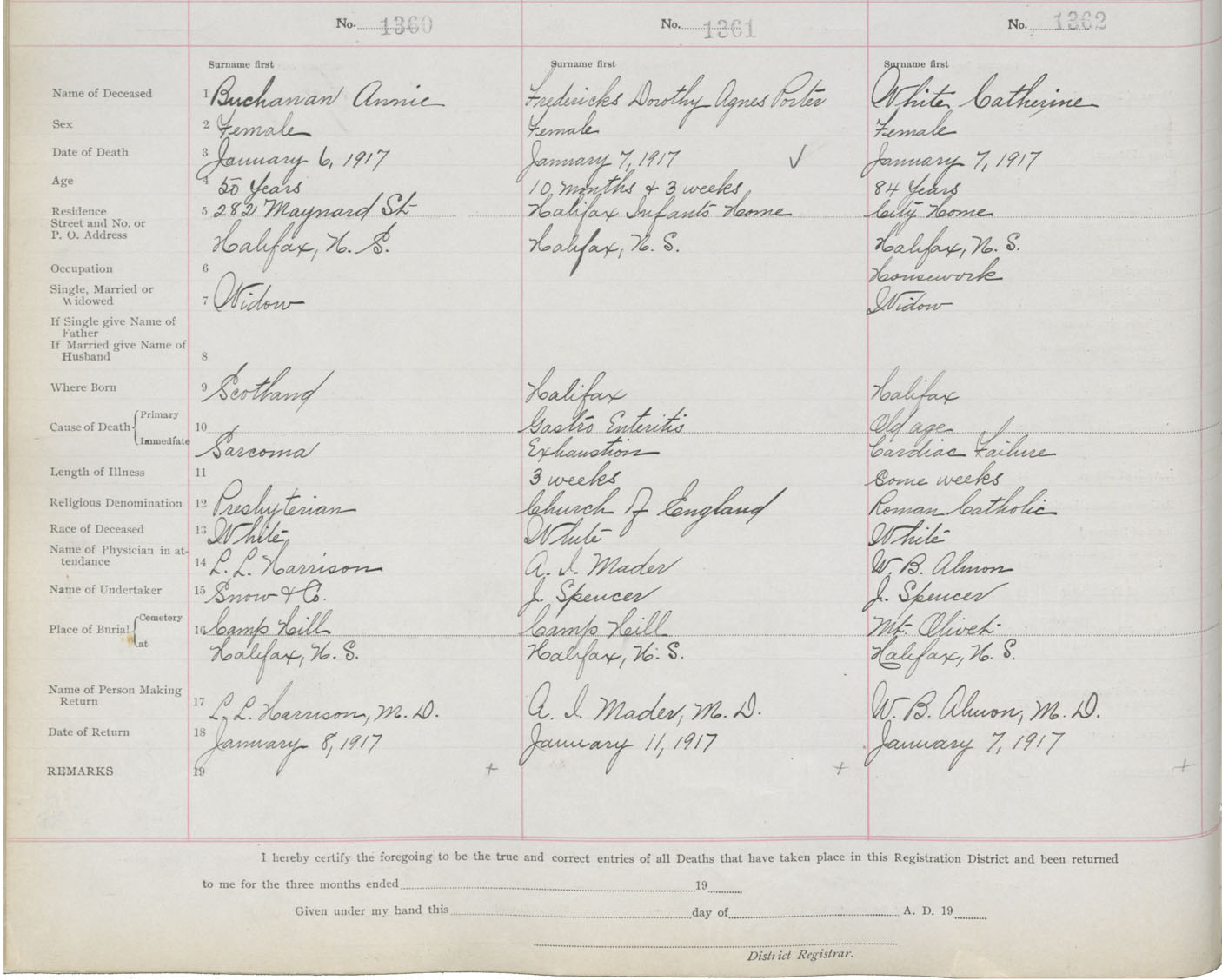 Death Registration: Year: 1917 book: 21 page: 227 number: 1360