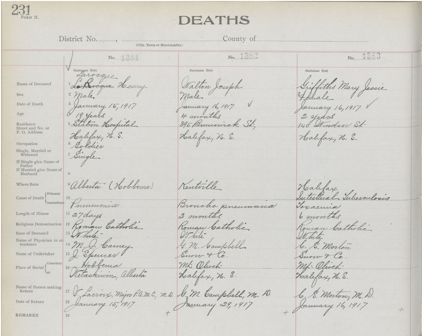 Death Registration: Year: 1917 book: 21 page: 231 number: 1381