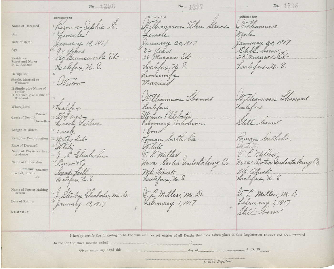 Death Registration: Year: 1917 book: 21 page: 233 number: 1396