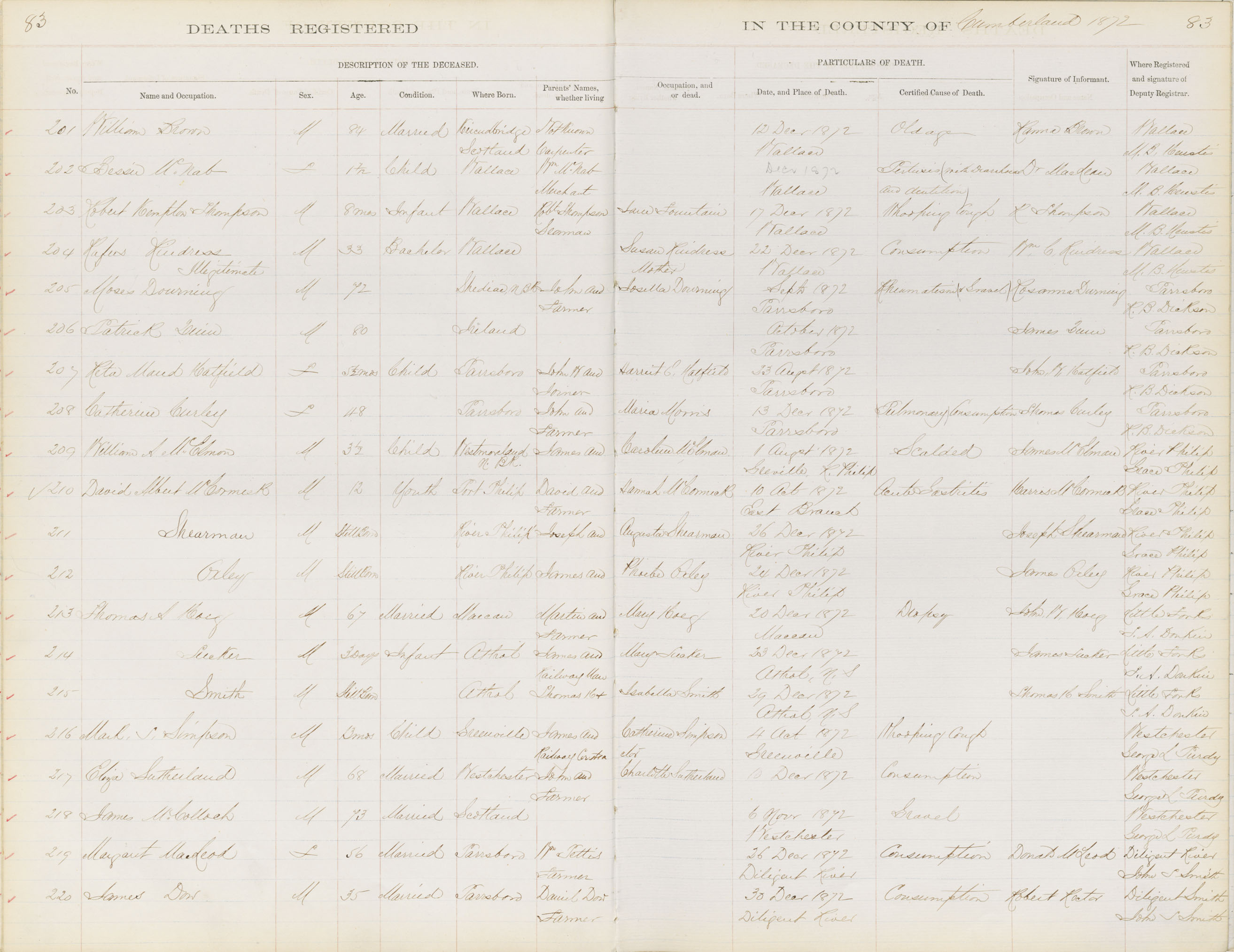 Death Registration: Year: 1872 book: 1805 page: 83 number: 220