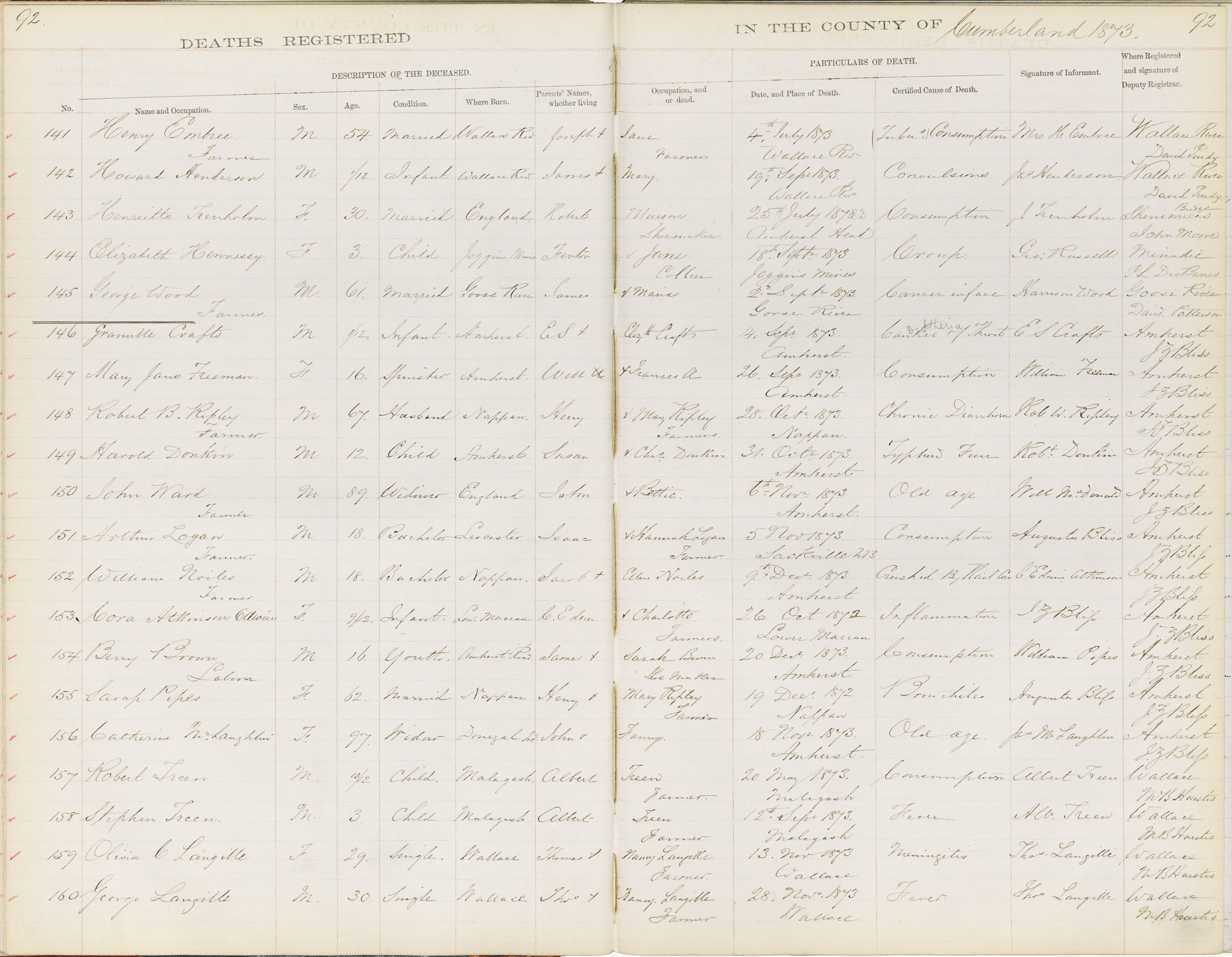Death Registration: Year: 1873 book: 1805 page: 92 number: 141