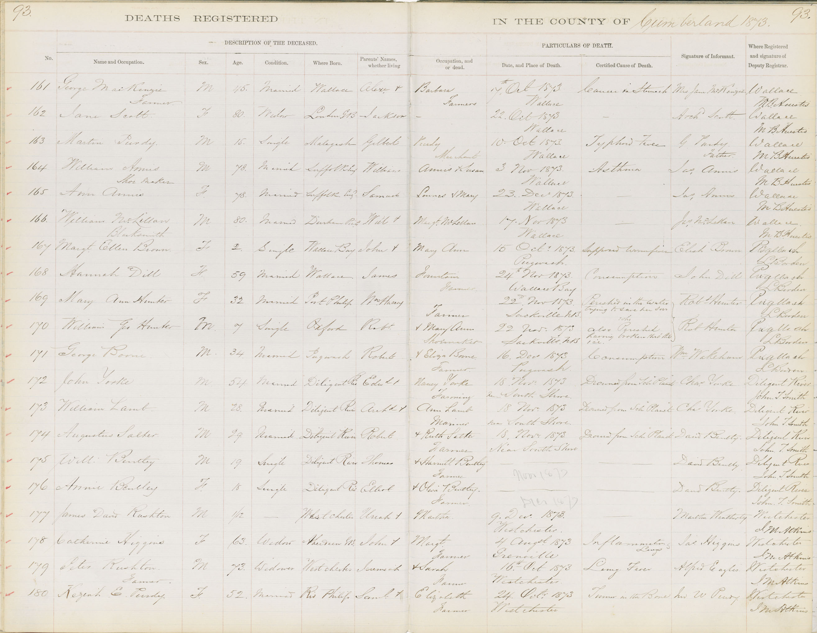 Death Registration: Year: 1873 book: 1805 page: 93 number: 161