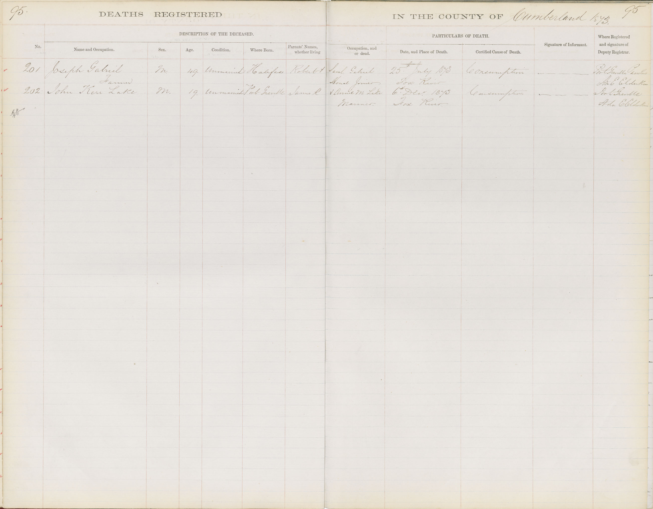 Death Registration: Year: 1873 book: 1805 page: 95 number: 201