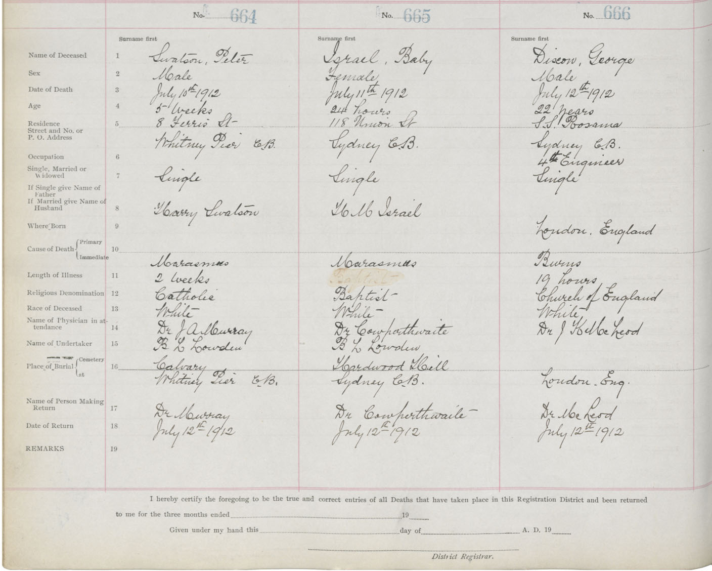 Death Registration: Year: 1912 book: 22 page: 111 number: 666