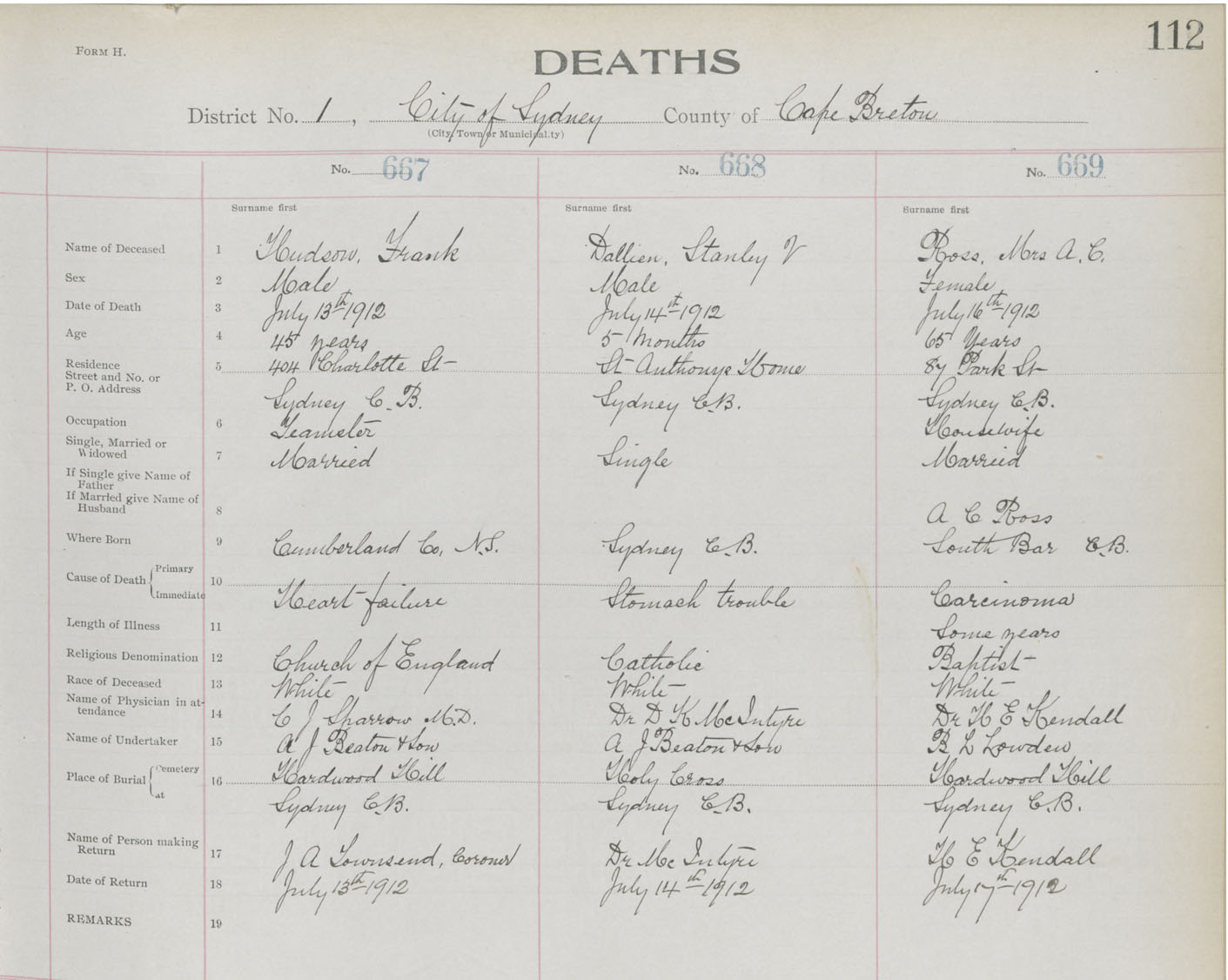 Death Registration: Year: 1912 book: 22 page: 112 number: 669