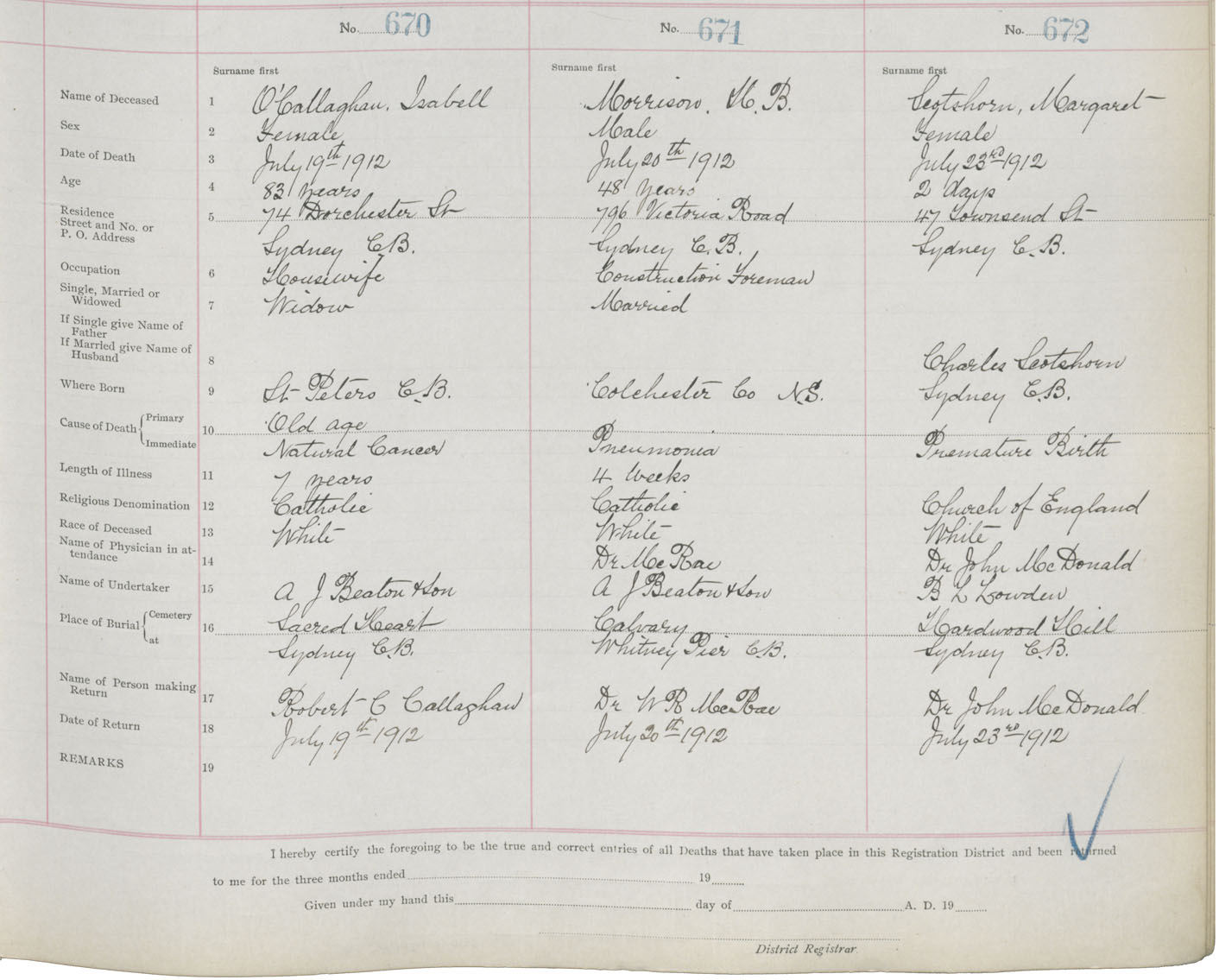 Death Registration: Year: 1912 book: 22 page: 112 number: 672