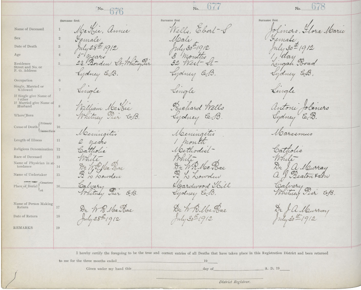 Death Registration: Year: 1912 book: 22 page: 113 number: 678