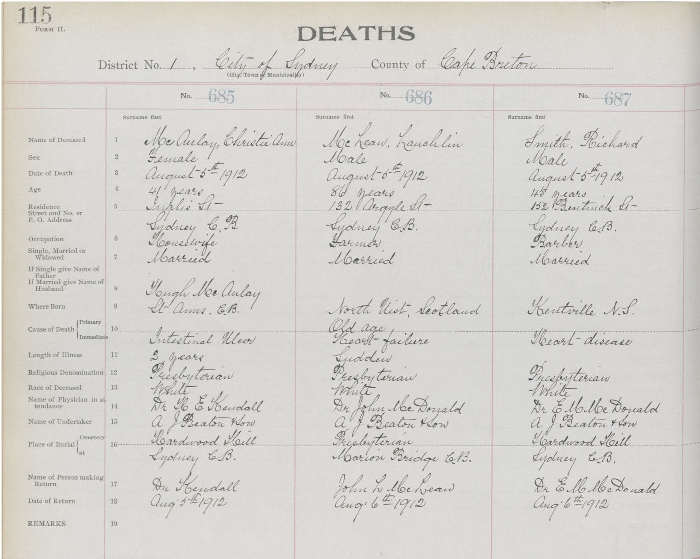 Death Registration: Year: 1912 book: 22 page: 115 number: 687