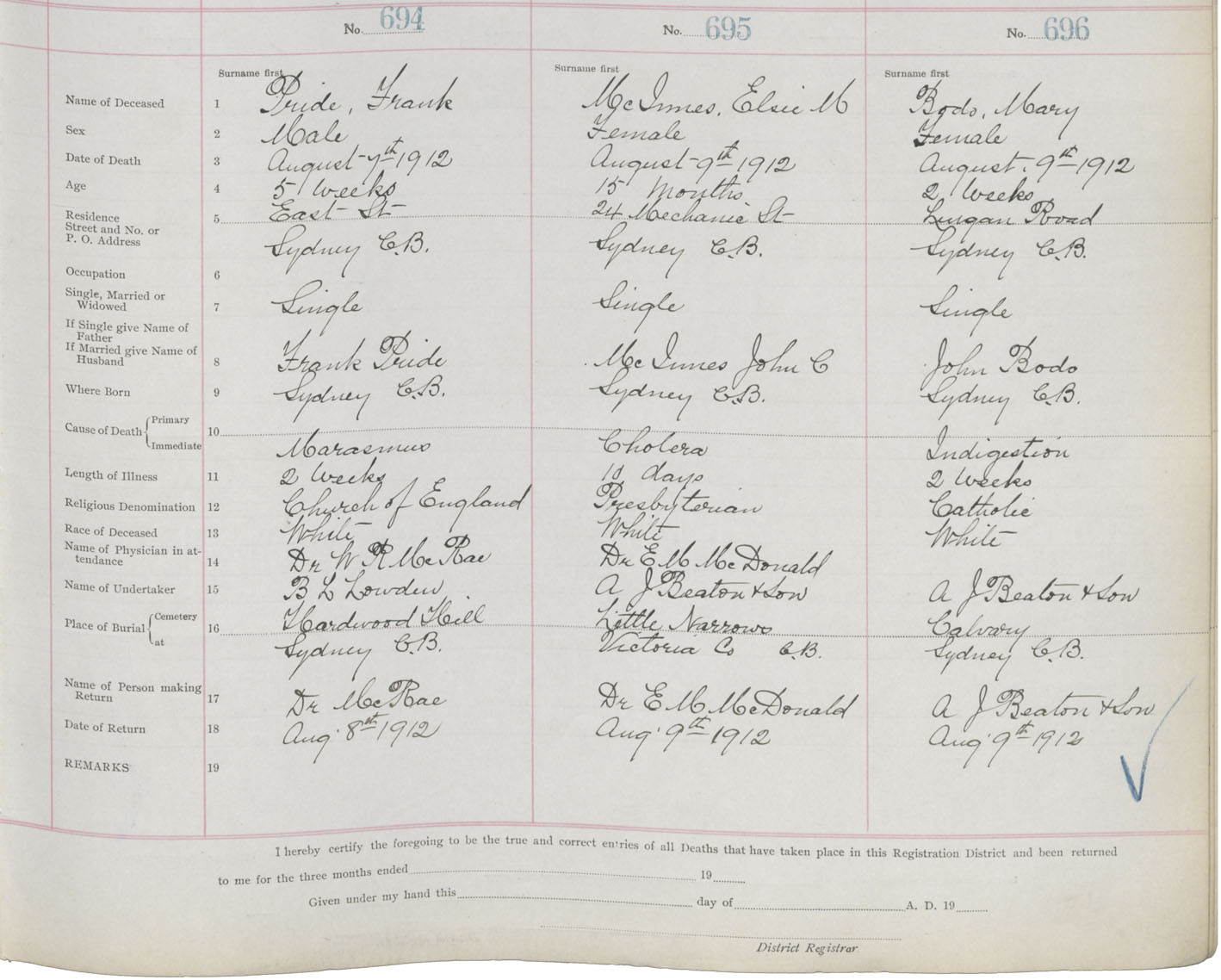 Death Registration: Year: 1912 book: 22 page: 116 number: 696