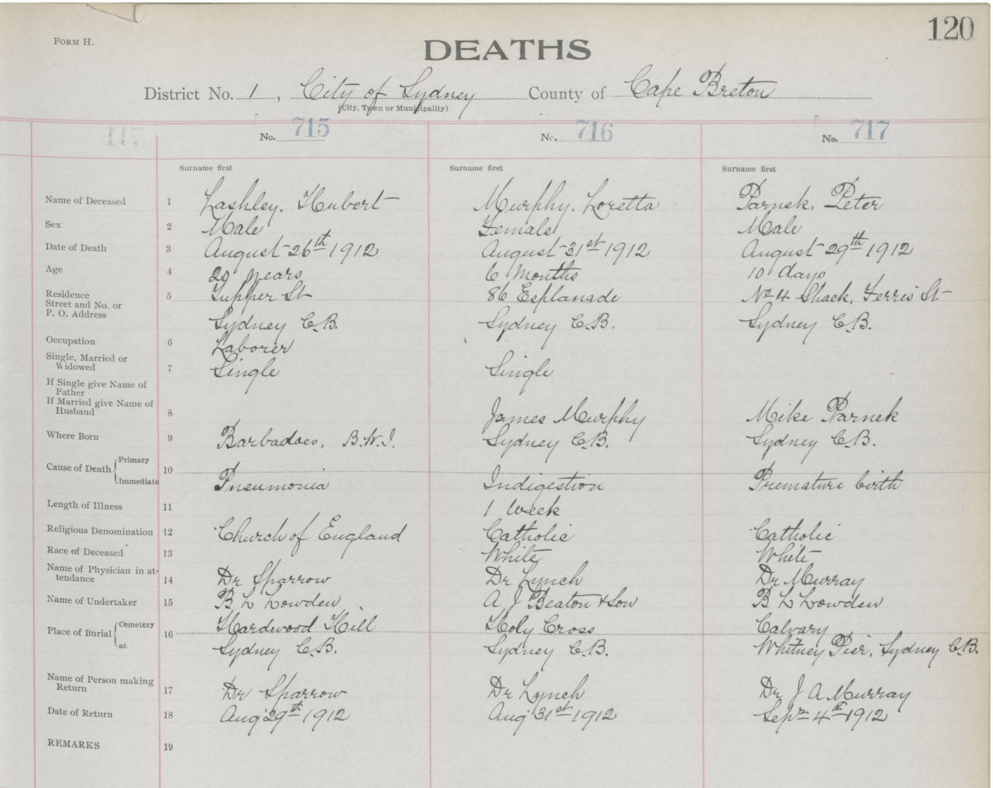 Death Registration: Year: 1912 book: 22 page: 120 number: 717