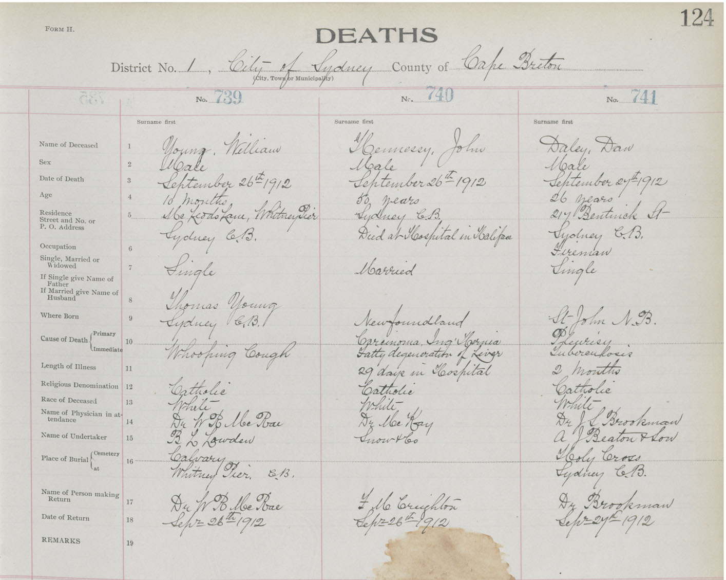Death Registration: Year: 1912 book: 22 page: 124 number: 741