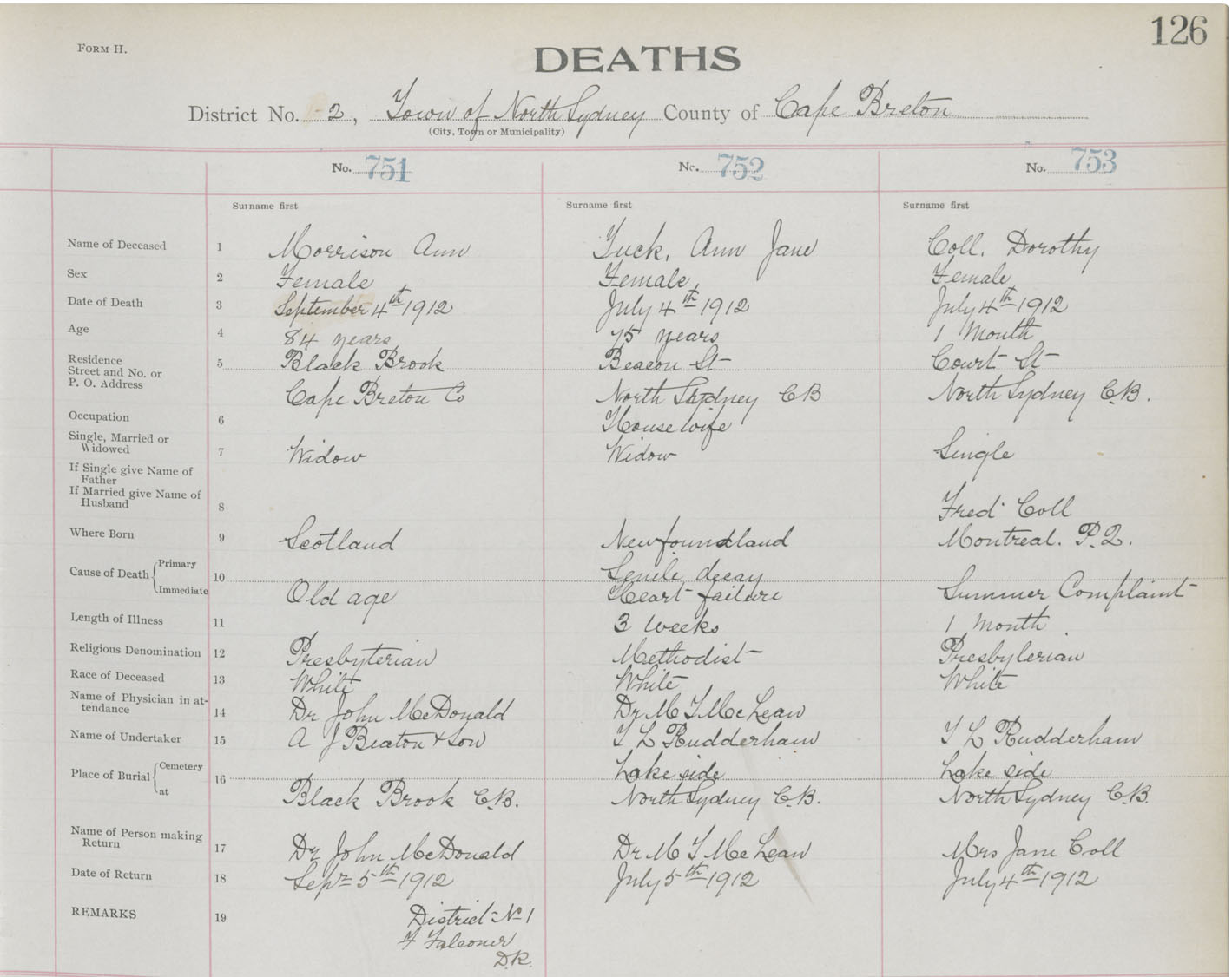 Death Registration: Year: 1912 book: 22 page: 126 number: 753