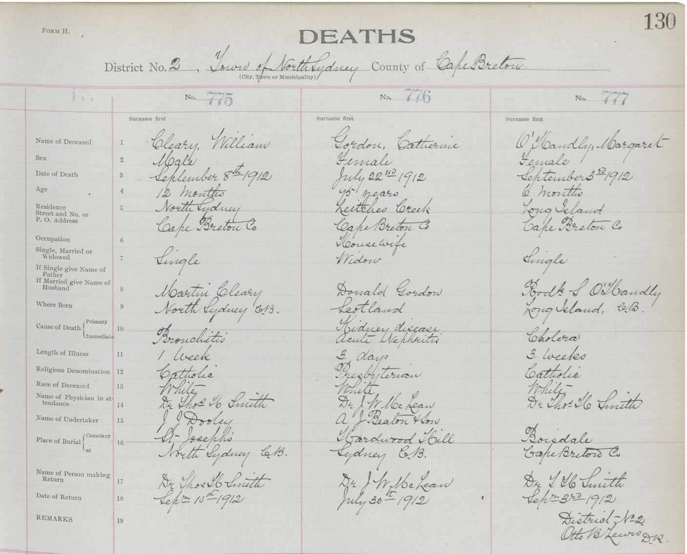Death Registration: Year: 1912 book: 22 page: 130 number: 777