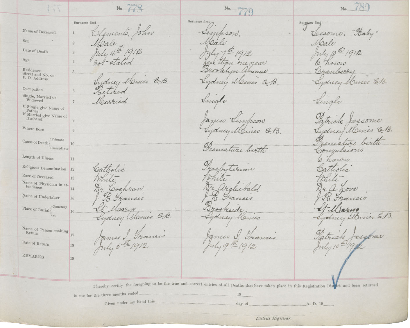 Male Death Registration: Year: 1912 book: 22 page: 130 number: 780