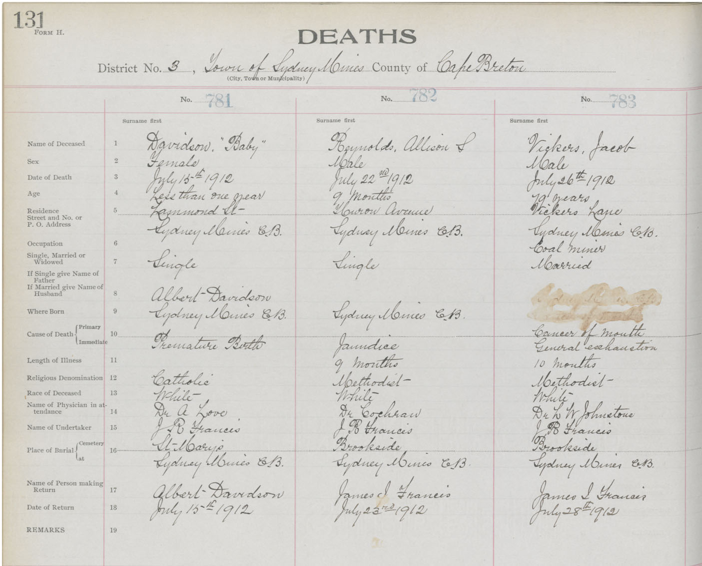 Death Registration: Year: 1912 book: 22 page: 131 number: 783
