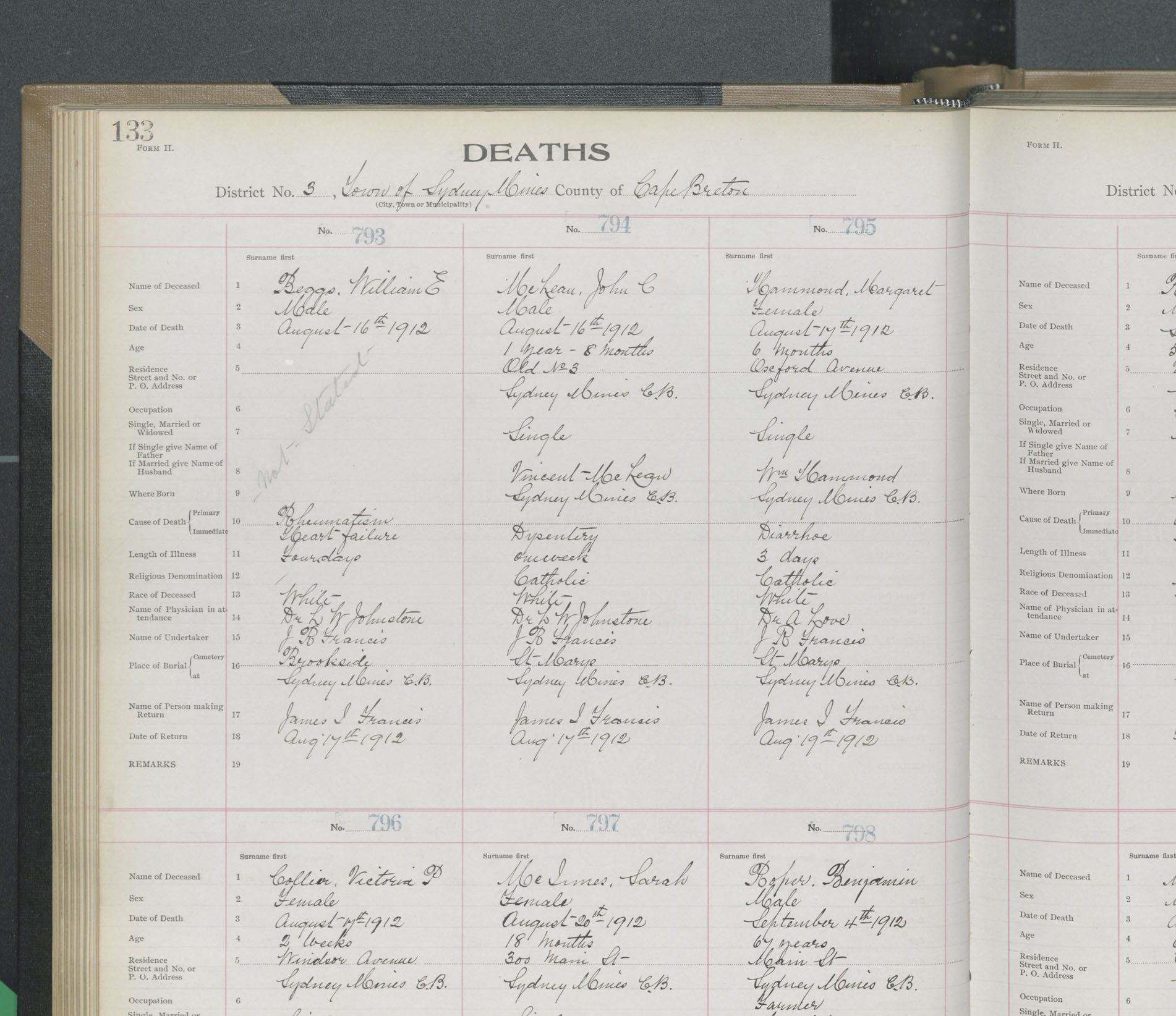 Death Registration: Year: 1912 book: 22 page: 133 number: 795