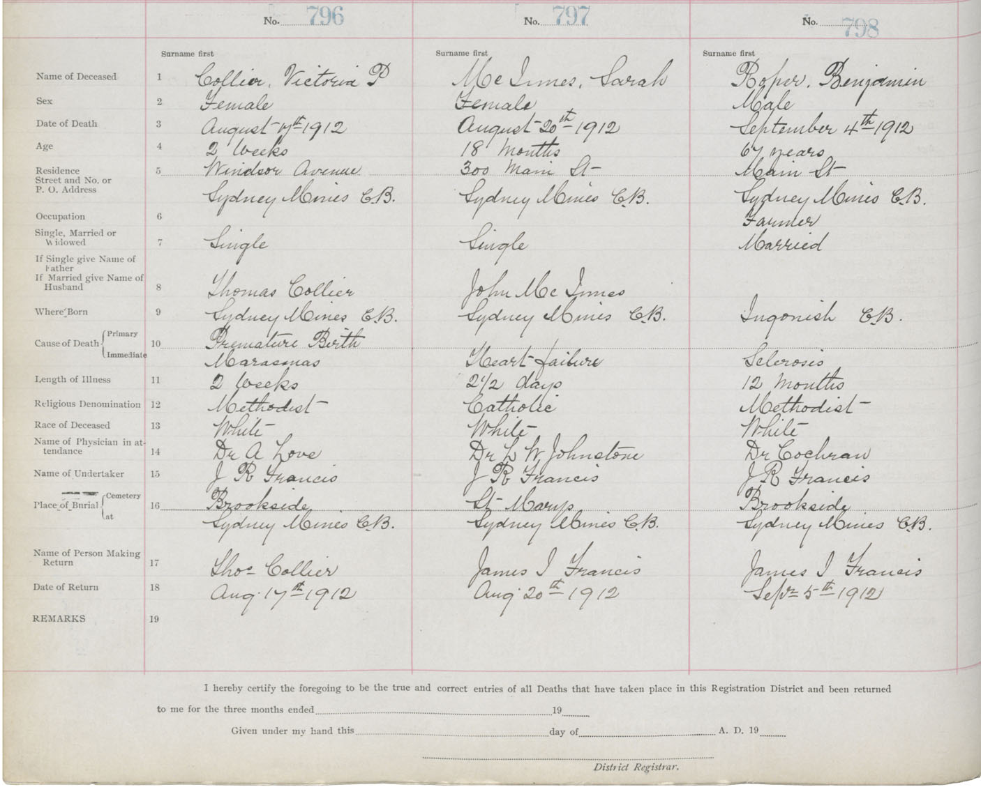 Death Registration: Year: 1912 book: 22 page: 133 number: 798