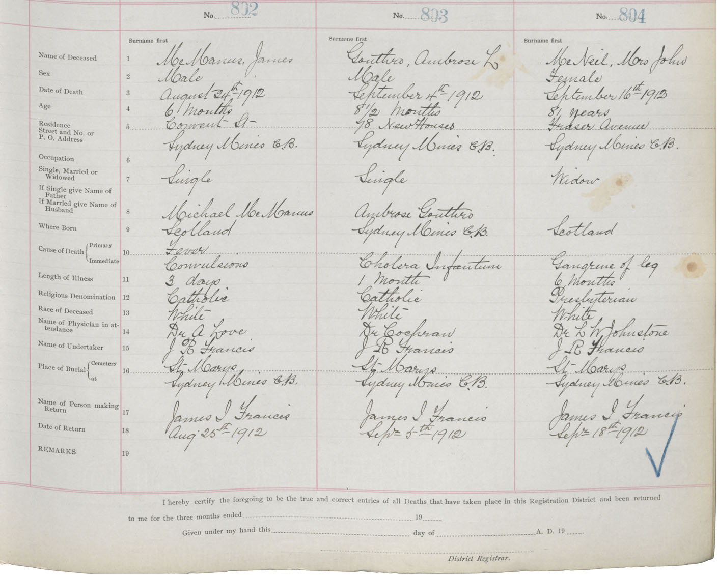 Death Registration: Year: 1912 book: 22 page: 134 number: 804